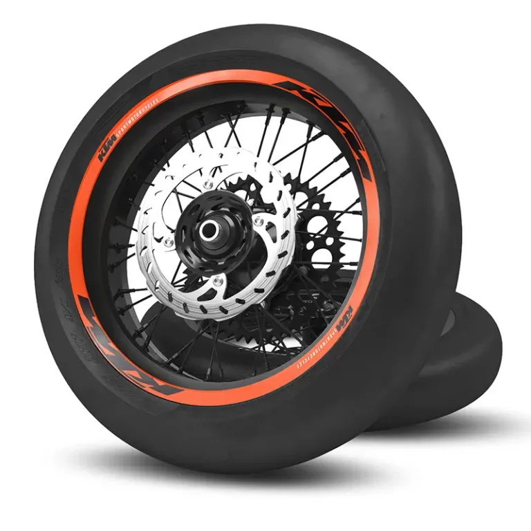 Seit 2008 entwickeln wir hochwertiges Motorrad-Zubehör für KTM, Husqvarna und viele weitere Marken. Unsere Felgenaufkleber für Motorräder sind nicht nur optisch ein Highlight, sondern überzeugen auch mit extremer Strapazierfähigkeit. Dank starkem Laminat halten sie selbst härtesten Bedingungen im Offroad- und Racing-Einsatz stand.