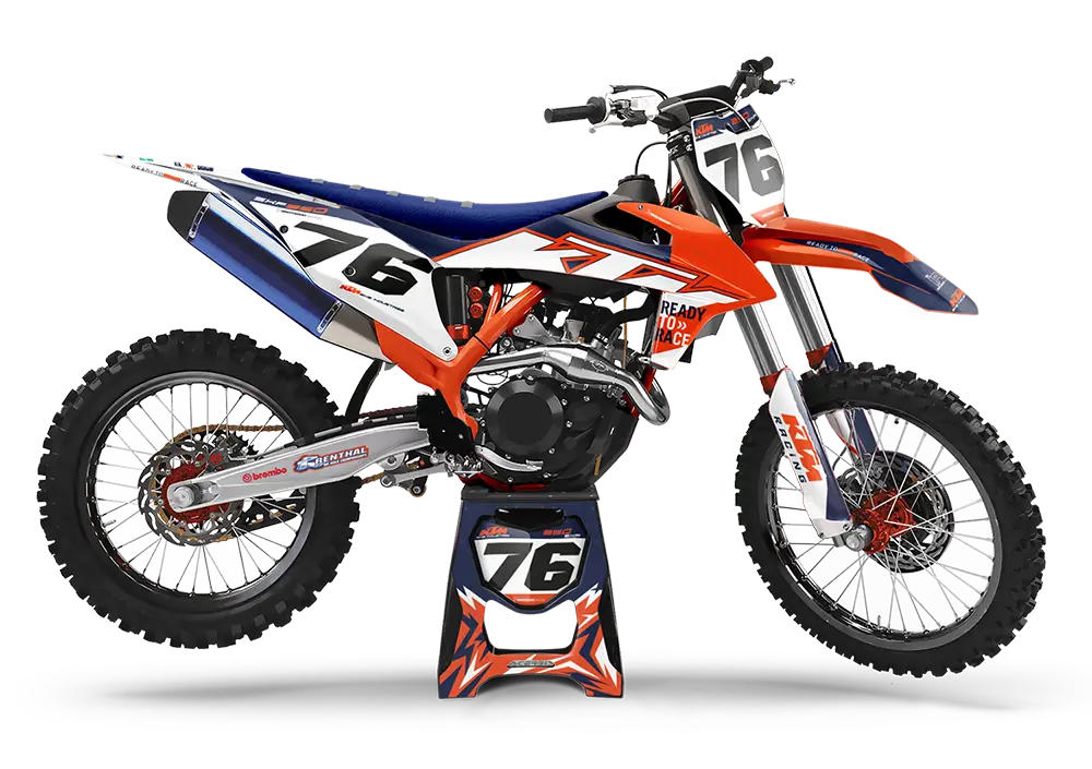 Define your look. Configure your custom graphics kit in the shop and place your order. Open the order confirmation email and fill out the form, providing as much information as possible. Once we receive your details, you’ll get your draft within 7 days for review and approval. After approval, your graphic kit will be produced and delivered within 5 days.