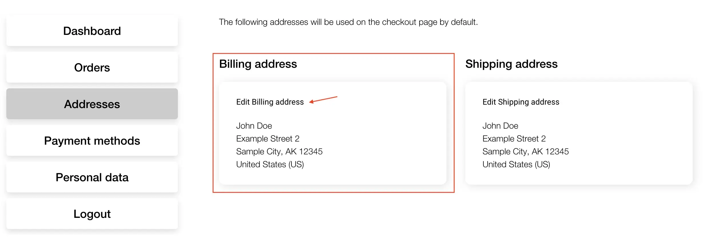 There are various ways to access the page where you can edit your billing address. You can generally find it in the “Your Account” section of our online shop.