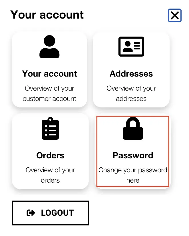 There are various ways to access the page where you can edit your password. You can generally find it in the “Your Account” section of our online shop.