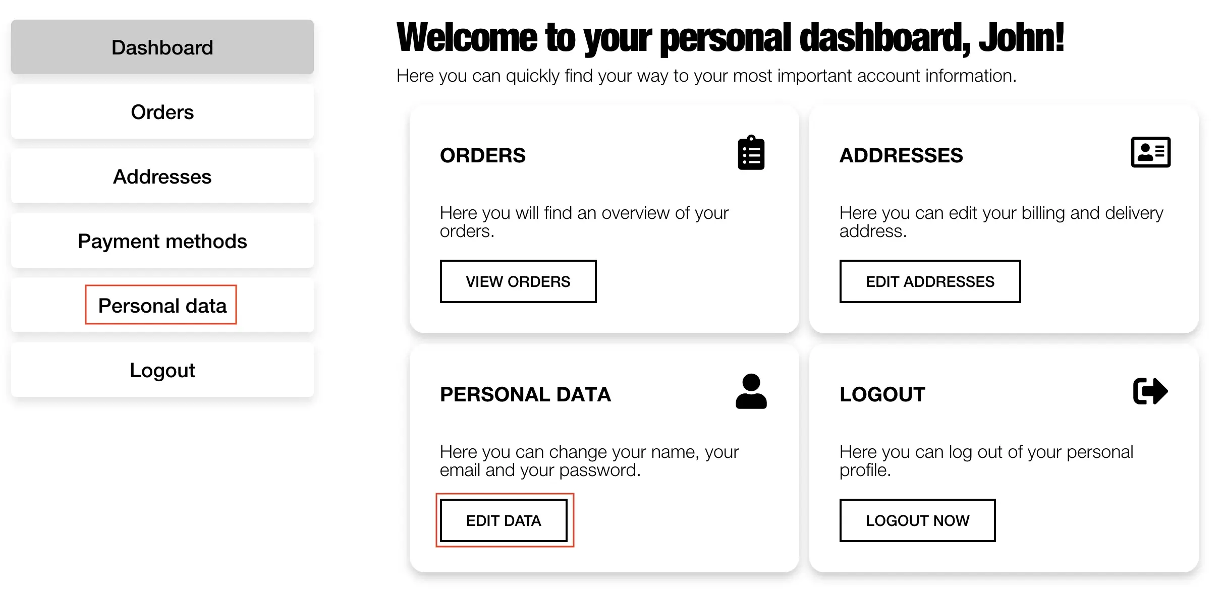 To access your personal data, either click on “Edit Data” directly on the dashboard or click on the “Personal Data” tab on the left side.