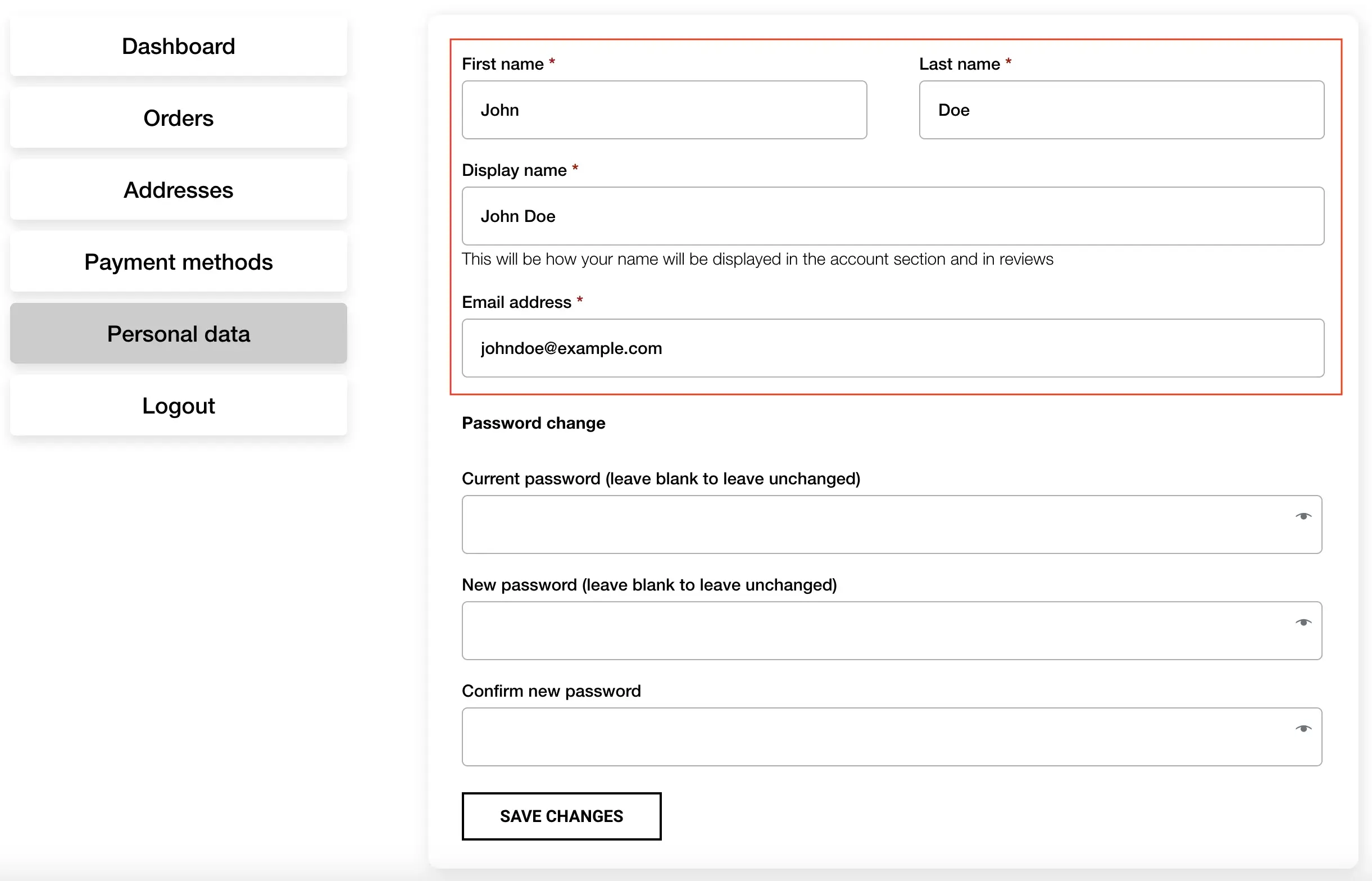To change your details, enter the new information you wish to update. Click on “Save Changes” to confirm the changes. Leave the fields for “Current Password,” “New Password,” and “Confirm New Password” blank if you don’t want to change your password.