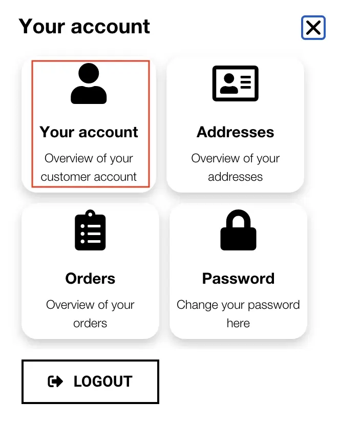 Click on the user icon in the top right corner of the header. A popup will appear. Click on “Your Account.” You will then be directed to your personal dashboard. From there, you can quickly access all the important information regarding “Your Account.”