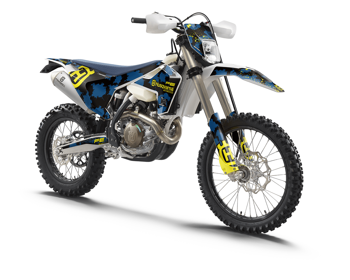 Our Husqvarna FE/TE | FC/TC graphics are truly special, highly durable, and flexible stickers with optimal adhesive strength. The graphics kit arrives at your doorstep as individually cut pieces tailored to fit specific areas – making the application a breeze as you align them with your fairing parts. In contrast to complete wrapping, as you might know from cars, the stickers do not have to be pulled and then cut, but fits directly.
