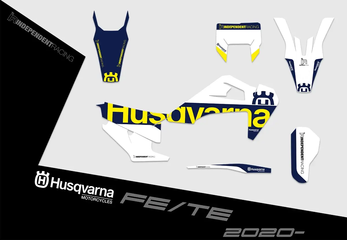 Our Husqvarna FE/TE | FC/TC graphics are truly special, highly durable, and flexible stickers with optimal adhesive strength. The graphics kit arrives at your doorstep as individually cut pieces tailored to fit specific areas – making the application a breeze as you align them with your fairing parts. In contrast to complete wrapping, as you might know from cars, the stickers do not have to be pulled and then cut, but fits directly.