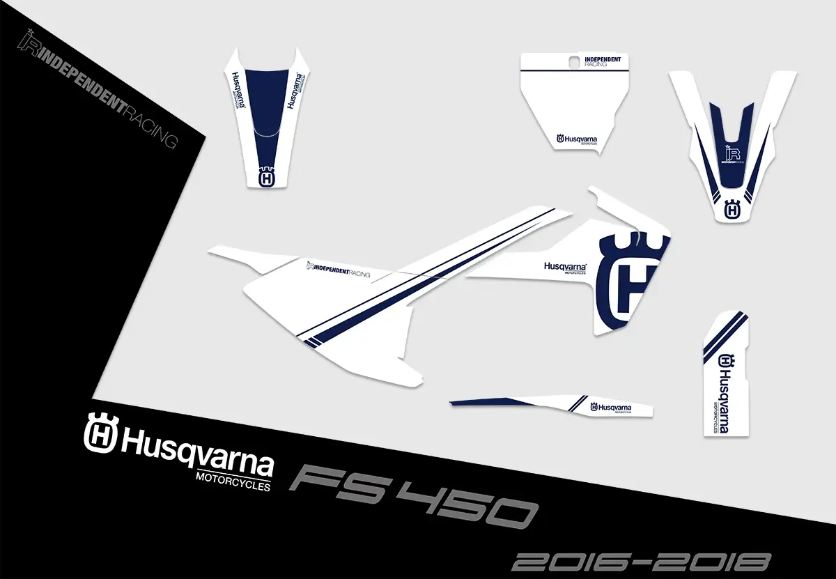 Our Husqvarna FS 450 graphics are truly special, highly durable, and flexible stickers with optimal adhesive strength. The graphics kit arrives at your doorstep as individually cut pieces tailored to fit specific areas – making the application a breeze as you align them with your fairing parts. In contrast to complete wrapping, as you might know from cars, the stickers do not have to be pulled and then cut, but fits directly.