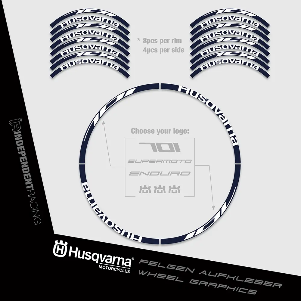 Color-wise, our „Stock 1A″ wheel graphics match all Husqvarna graphics in blue and white colors.