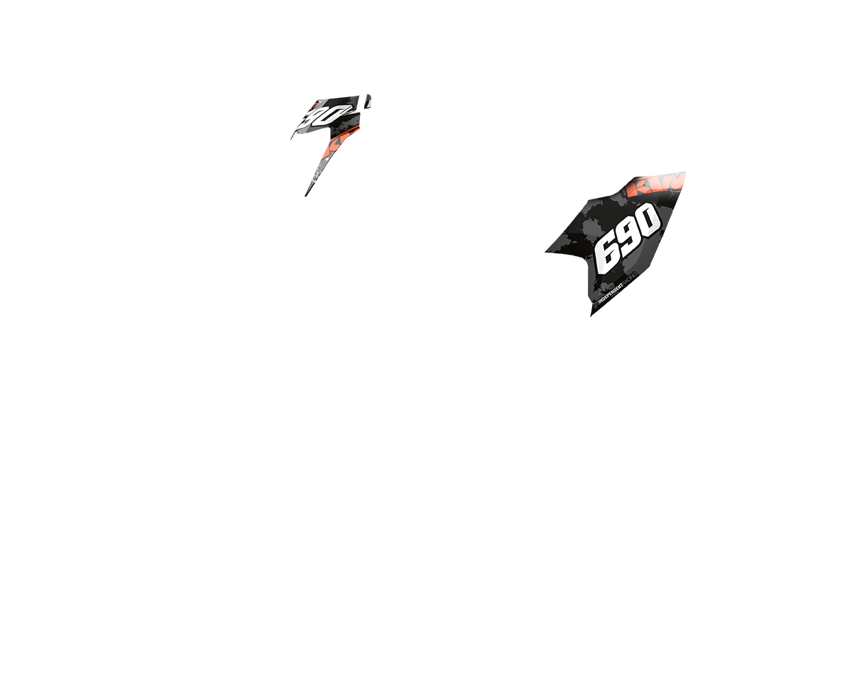 Our KTM 690 Enduro R Graphics are truly special, highly durable, and flexible stickers with optimal adhesive strength. The graphics kit arrives at your doorstep as individually cut pieces tailored to fit specific areas – making the application a breeze as you align them with your fairing parts. In contrast to complete wrapping, as you might know from cars, the stickers do not have to be pulled and then cut, but fits directly. Due to our unique film thickness (0.8 mm), achieving complete edge-to-edge coverage on all surfaces of the fairing might be challenging. As a result, some parts of the fairing will remain visible The product image closely resembles reality, providing a reliable guide for application!