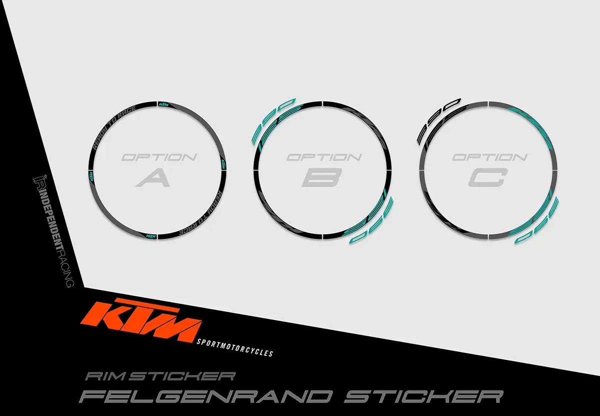 The KTM Duke 125/390 from 2017 is available in different models. It’s important to know that all models are completely identical; only the colors of the plastic parts differ. So, the graphics will definitely fit your bike. In the configurator, you can choose between these models. Depending on which model you select, either 125 or 390 will be visible on the graphics. Therefore, choose the appropriate model.