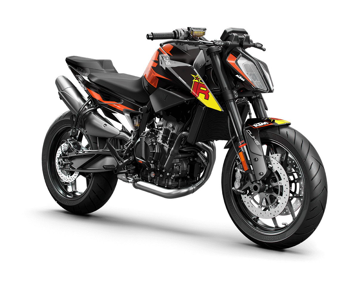 The KTM Duke 790/890 is available in different models. Below, you can see all the models. It’s important to know that all models are completely identical in construction; only the colors of the plastic parts differ. Therefore, the graphics will fit your bike regardless. In the configurator, you can choose between these models. Depending on which model you select, either 790 or 890 will be visible on the graphics. So, choose the appropriate model accordingly.