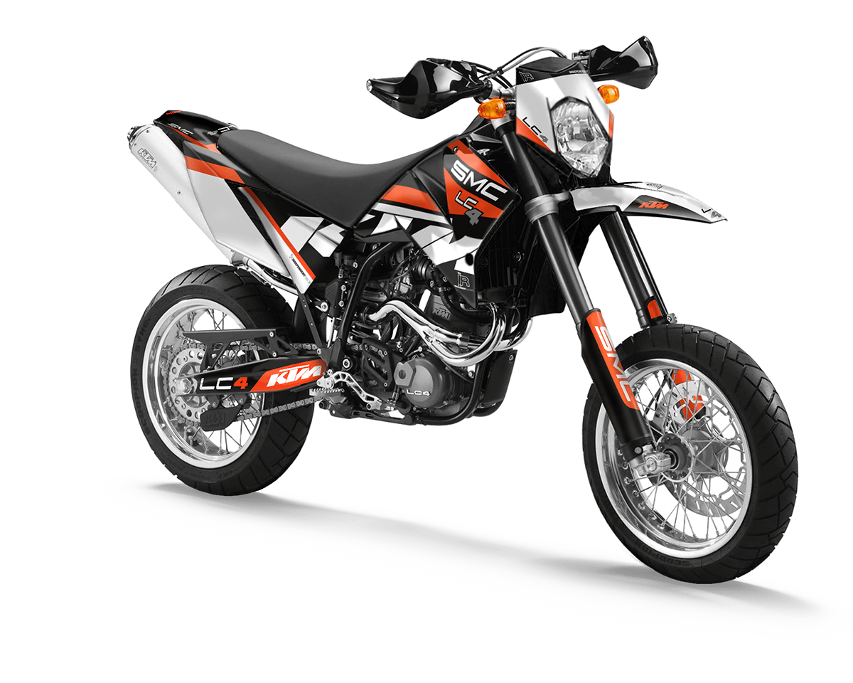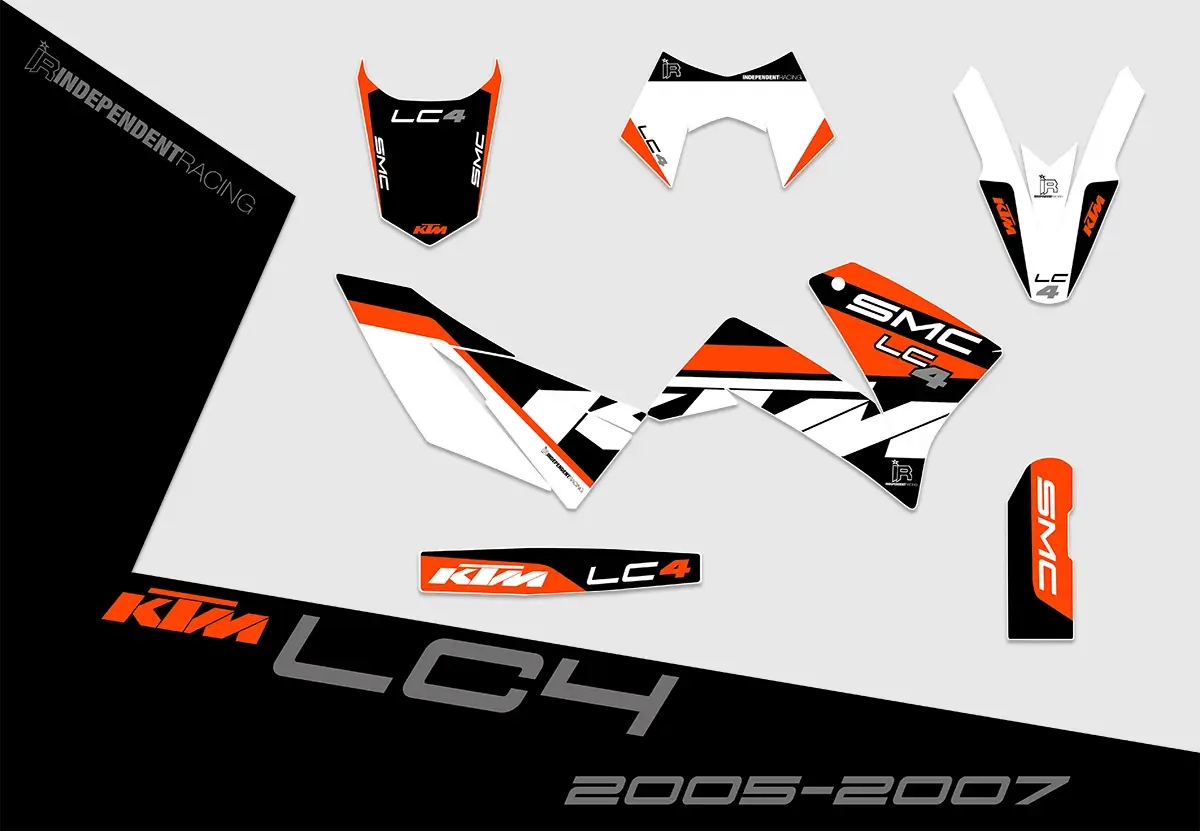 The KTM LC4 is available in two different models. It’s important to know that all models are completely identical; only the colors of the plastic parts differ. So, the graphics will definitely fit your bike. This is just for better visualization. It helps you imagine how the graphics will look on your bike more easily. The selection of the model does not affect the design of the graphic kit. In the configurator, you can choose between these two models.