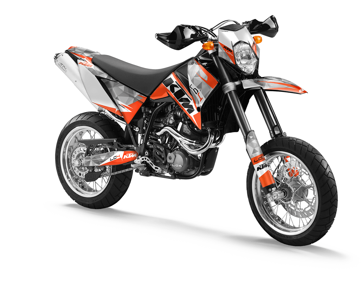 The KTM LC4 is available in two different models. It’s important to know that all models are completely identical; only the colors of the plastic parts differ. So, the graphics will definitely fit your bike. This is just for better visualization. It helps you imagine how the graphics will look on your bike more easily. The selection of the model does not affect the design of the graphic kit. In the configurator, you can choose between these two models.