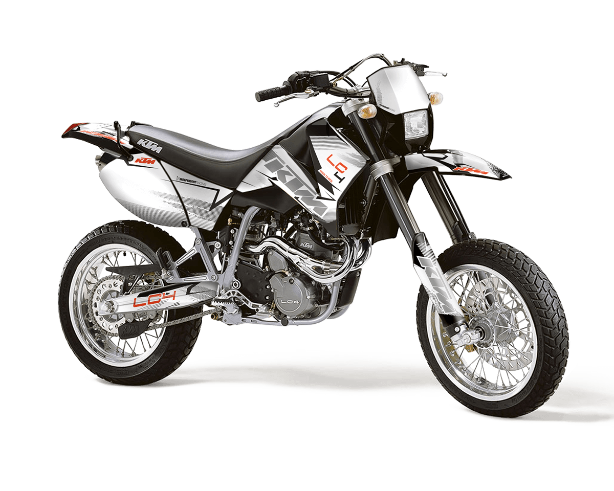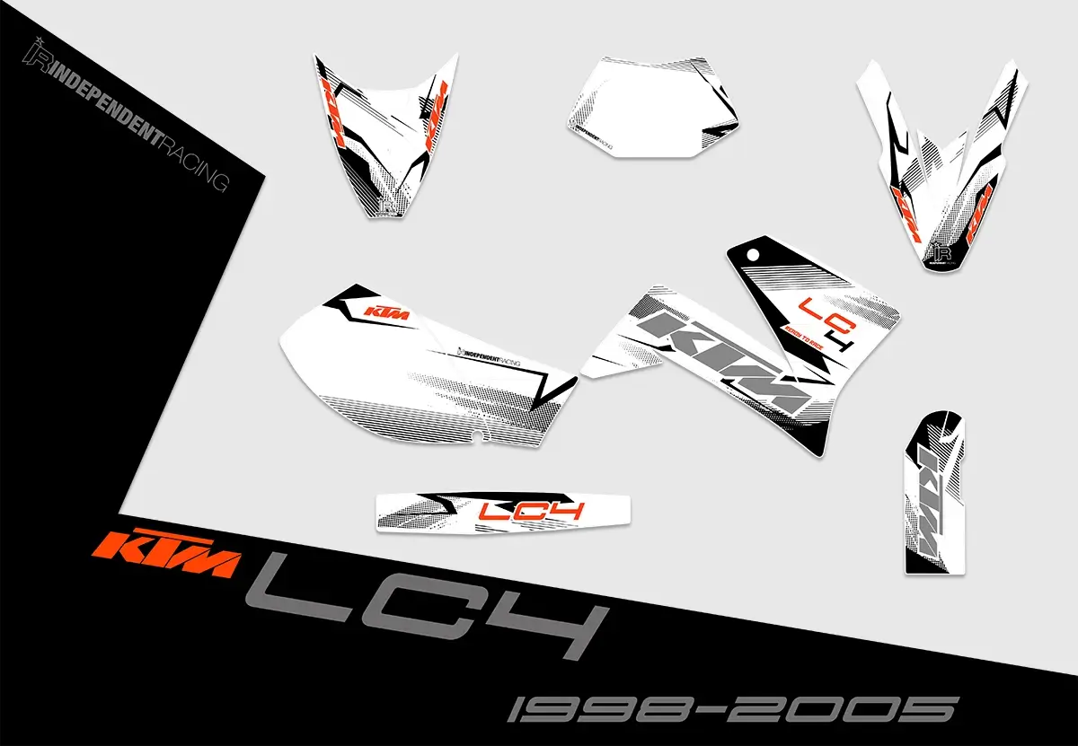 The KTM LC4 is available in two different models. It’s important to know that all models are completely identical; only the colors of the plastic parts differ. So, the graphics will definitely fit your bike. This is just for better visualization. It helps you imagine how the graphics will look on your bike more easily. The selection of the model does not affect the design of the graphic kit. In the configurator, you can choose between these two models.