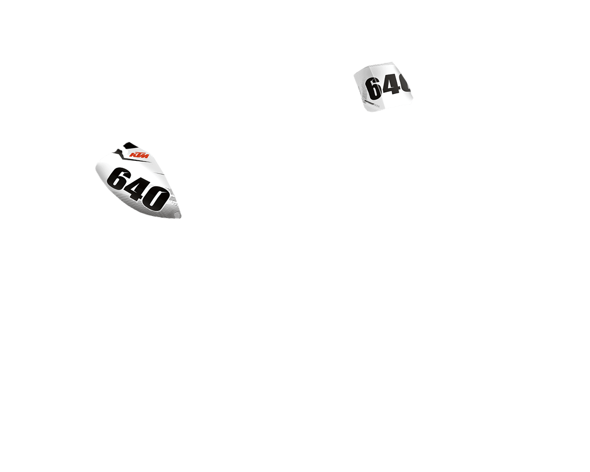 Our KTM LC4 graphics are truly special, highly durable, and flexible stickers with optimal adhesive strength. The graphics kit arrives at your doorstep as individually cut pieces tailored to fit specific areas – making the application a breeze as you align them with your fairing parts. In contrast to complete wrapping, as you might know from cars, the stickers do not have to be pulled and then cut, but fits directly.