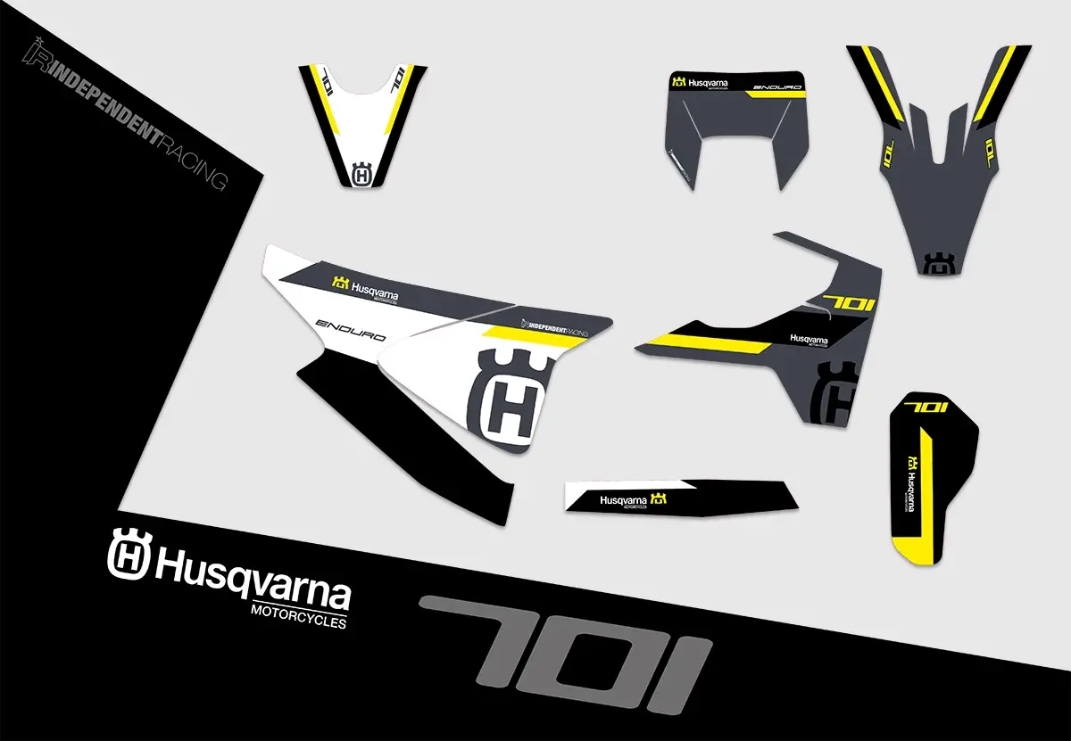 Die Husqvarna 701 Enduro ist in drei verschiedenen Modellen erhältlich: 701 Enduro 2016 – 2019, 701 Enduro 2020 – 2022 und 701 Enduro 2023 – 2024. Wichtig dabei ist zu wissen, dass alle Modelle komplett baugleich sind, lediglich die Handschalen und die Farben der Plastikteile unterscheiden sich. Das Dekor passt also auf jeden Fall auf dein Bike, wenn du das richtige Modell auswählst. Am Design ändert die Auswahl des Modells nichts. Im Konfigurator kannst du zwischen diesen drei Modellen auswählen.