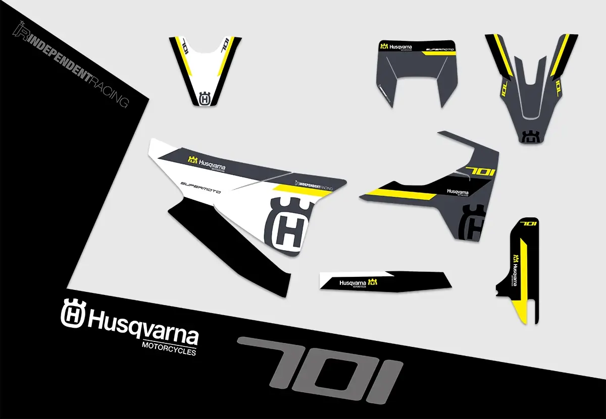 Unsere Husvarna 701 Supermoto Dekore sind ganz besondere, sehr haltbare und flexible Aufkleber mit optimaler Haftkraft. Das Dekor kommt bei dir als in passende Formen geschnittene Einzelteile an – so musst du dich nur an deinen Verkleidungsteilen orientieren und das Bekleben ist spielend einfach. Anders als bei einer Komplettfolierung, wie man es vielleicht von Autos kennt, muss die Folie nicht gezogen und dann zugeschnitten werden, sondern passt direkt.
