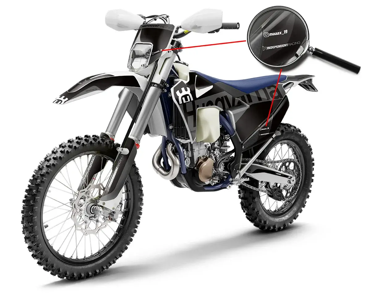 Unsere Husqvarna FE/TE | FC/TC Dekore sind ganz besondere, sehr haltbare und flexible Aufkleber mit optimaler Haftkraft. Das Dekor kommt bei dir als in passende Formen geschnittene Einzelteile an – so musst du dich nur an deinen Verkleidungsteilen orientieren und das Bekleben ist spielend einfach. Anders als bei einer Komplettfolierung, wie man es vielleicht von Autos kennt, muss die Folie nicht gezogen und dann zugeschnitten werden, sondern passt direkt.