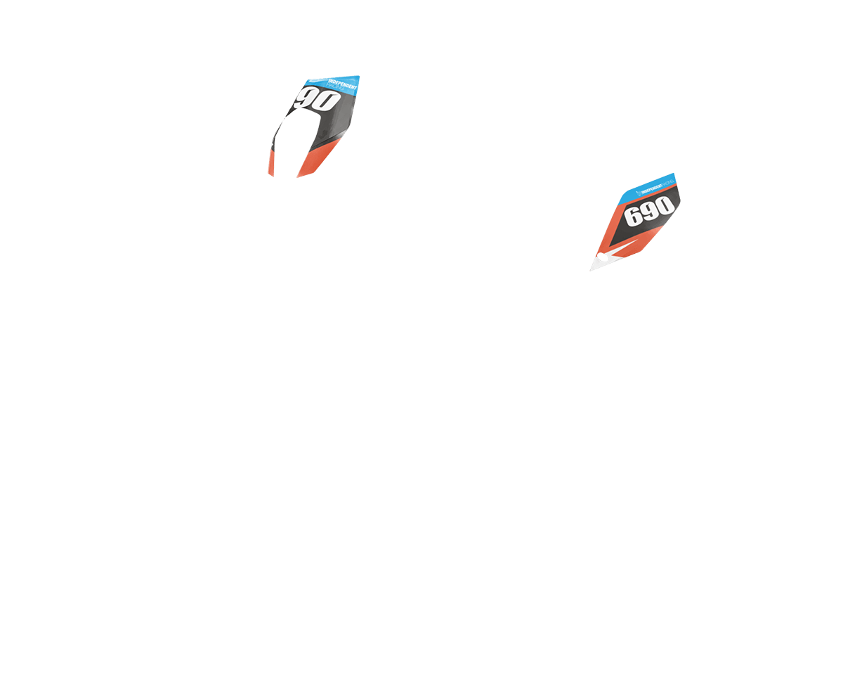 Unsere KTM 690 Enduro R Dekore sind ganz besondere, sehr haltbare und flexible Aufkleber mit optimaler Haftkraft. Das Dekor kommt bei dir als in passende Formen geschnittene Einzelteile an – so musst du dich nur an deinen Verkleidungsteilen orientieren und das Bekleben ist spielend einfach. Anders als bei einer Komplettfolierung, wie man es vielleicht von Autos kennt, muss die Folie nicht gezogen und dann zugeschnitten werden, sondern passt direkt. Es werden immer Teile der Verkleidung zu sehen sein, da es bei unserer besonderen Folienstärke (0,8 mm) nicht einfach bis gar nicht zu realisieren wäre, alle Kanten zu verkleben. Das Produktbild kommt der Realität sehr nah, hier kannst du dich gut orientieren!