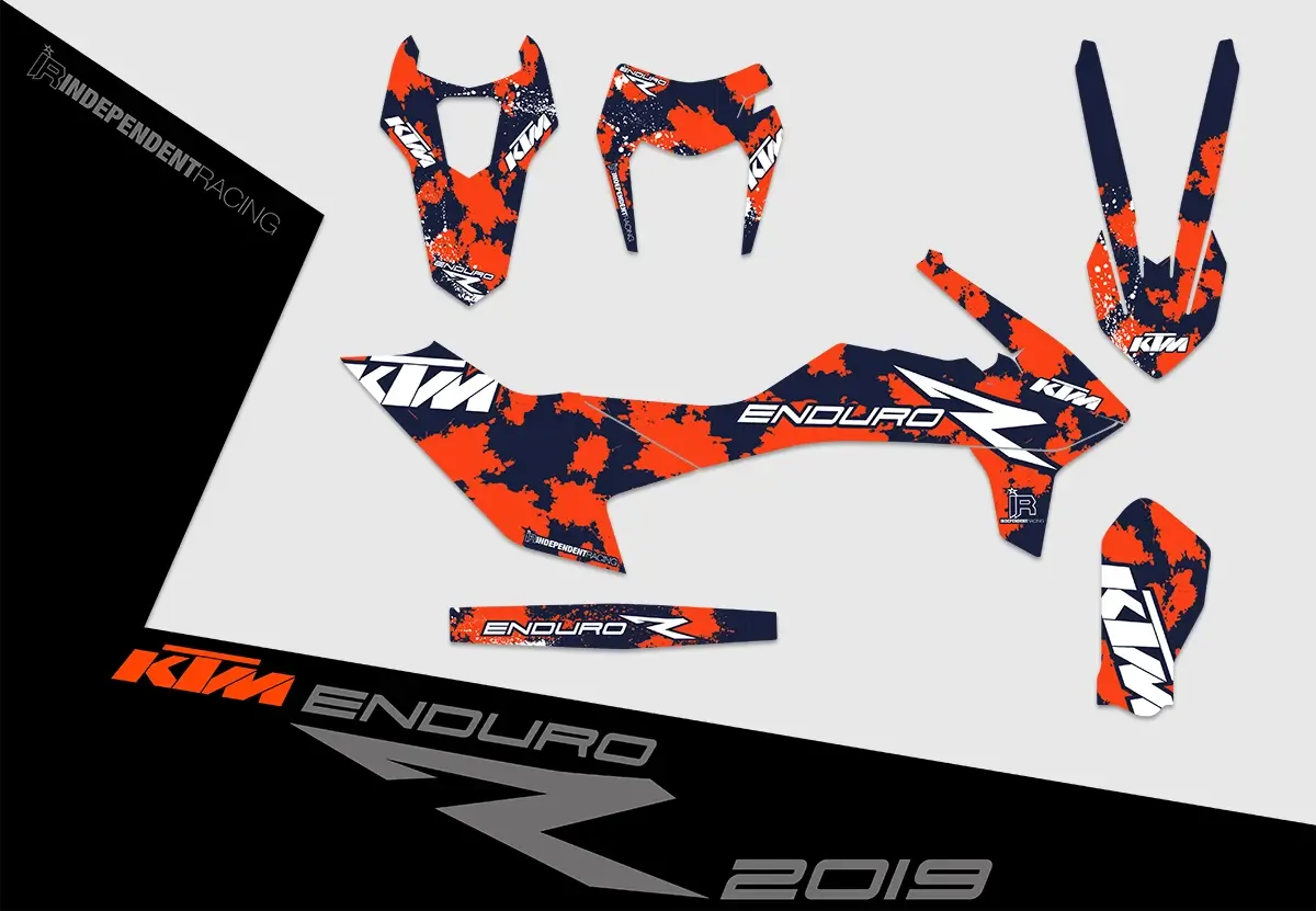 Unsere KTM 690 Enduro R Dekore sind ganz besondere, sehr haltbare und flexible Aufkleber mit optimaler Haftkraft. Das Dekor kommt bei dir als in passende Formen geschnittene Einzelteile an – so musst du dich nur an deinen Verkleidungsteilen orientieren und das Bekleben ist spielend einfach. Anders als bei einer Komplettfolierung, wie man es vielleicht von Autos kennt, muss die Folie nicht gezogen und dann zugeschnitten werden, sondern passt direkt. Es werden immer Teile der Verkleidung zu sehen sein, da es bei unserer besonderen Folienstärke (0,8 mm) nicht einfach bis gar nicht zu realisieren wäre, alle Kanten zu verkleben. Das Produktbild kommt der Realität sehr nah, hier kannst du dich gut orientieren!