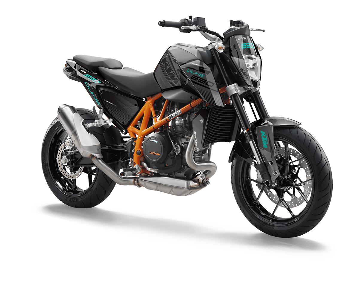 Die KTM Duke 690 ist in vier verschiedenen Modellen erhältlich: Orange/Schwarz, Orange/Weiß, Schwarz/Orange und Schwarz/Weiß. Wichtig dabei ist zu wissen, dass alle Modelle komplett baugleich sind, lediglich die Farben der Plastikteile unterscheiden sich. Das Dekor passt also auf jeden Fall auf dein Bike. Dies dient nur der besseren Ansicht. So kannst du dir einfacher vorstellen, wie das Dekor auf deinem Bike aussieht. Am Dekor ändert die Auswahl des Modells nichts. Im Konfigurator kannst du zwischen diesen vier Modellen auswählen.