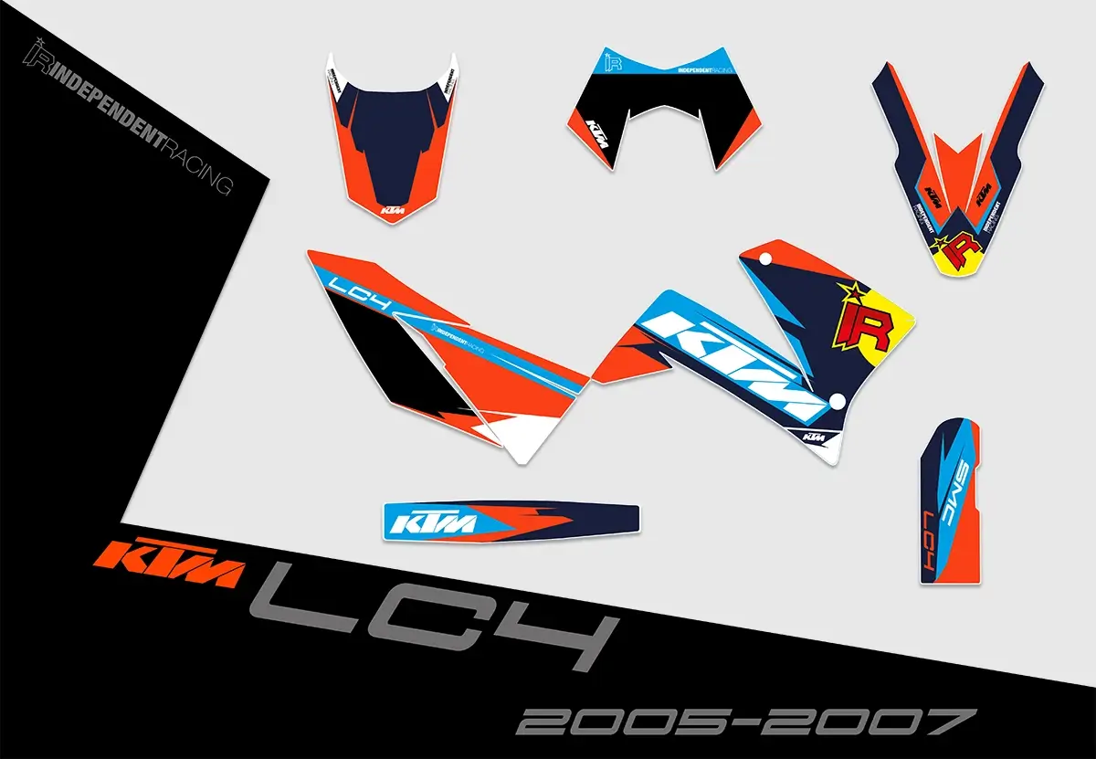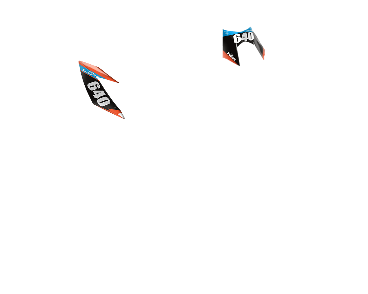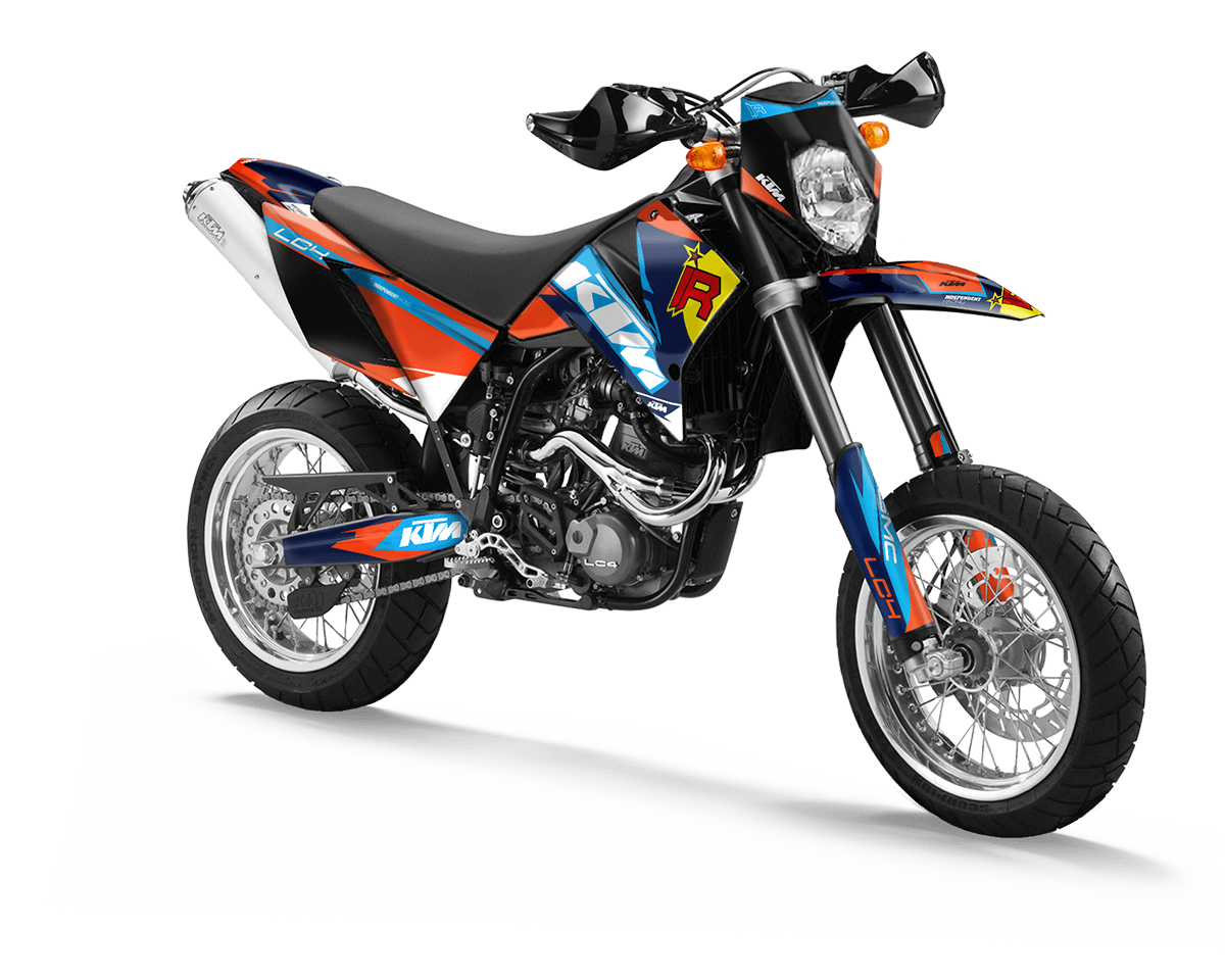 Die KTM LC4 ist in zwei verschiedenen Modellen erhältlich. Wichtig dabei ist zu wissen, dass alle Modelle komplett baugleich sind, lediglich die Farben der Plastikteile unterscheiden sich. Das Dekor passt also auf jeden Fall auf dein Bike. Dies dient nur der besseren Ansicht. So kannst du dir einfacher vorstellen, wie das Dekor auf deinem Bike aussieht. Am Dekor ändert die Auswahl des Modells nichts. Im Konfigurator kannst du zwischen diesen zwei Modellen auswählen.