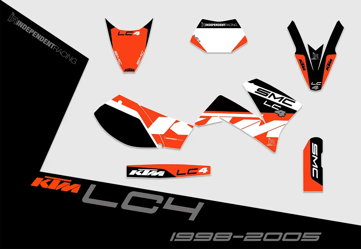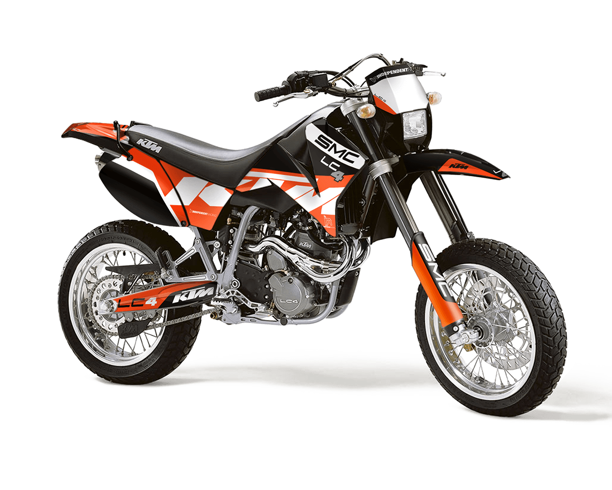 Die KTM LC4 ist in zwei verschiedenen Modellen erhältlich. Wichtig dabei ist zu wissen, dass alle Modelle komplett baugleich sind, lediglich die Farben der Plastikteile unterscheiden sich. Das Dekor passt also auf jeden Fall auf dein Bike. Dies dient nur der besseren Ansicht. So kannst du dir einfacher vorstellen, wie das Dekor auf deinem Bike aussieht. Am Dekor ändert die Auswahl des Modells nichts. Im Konfigurator kannst du zwischen diesen zwei Modellen auswählen.