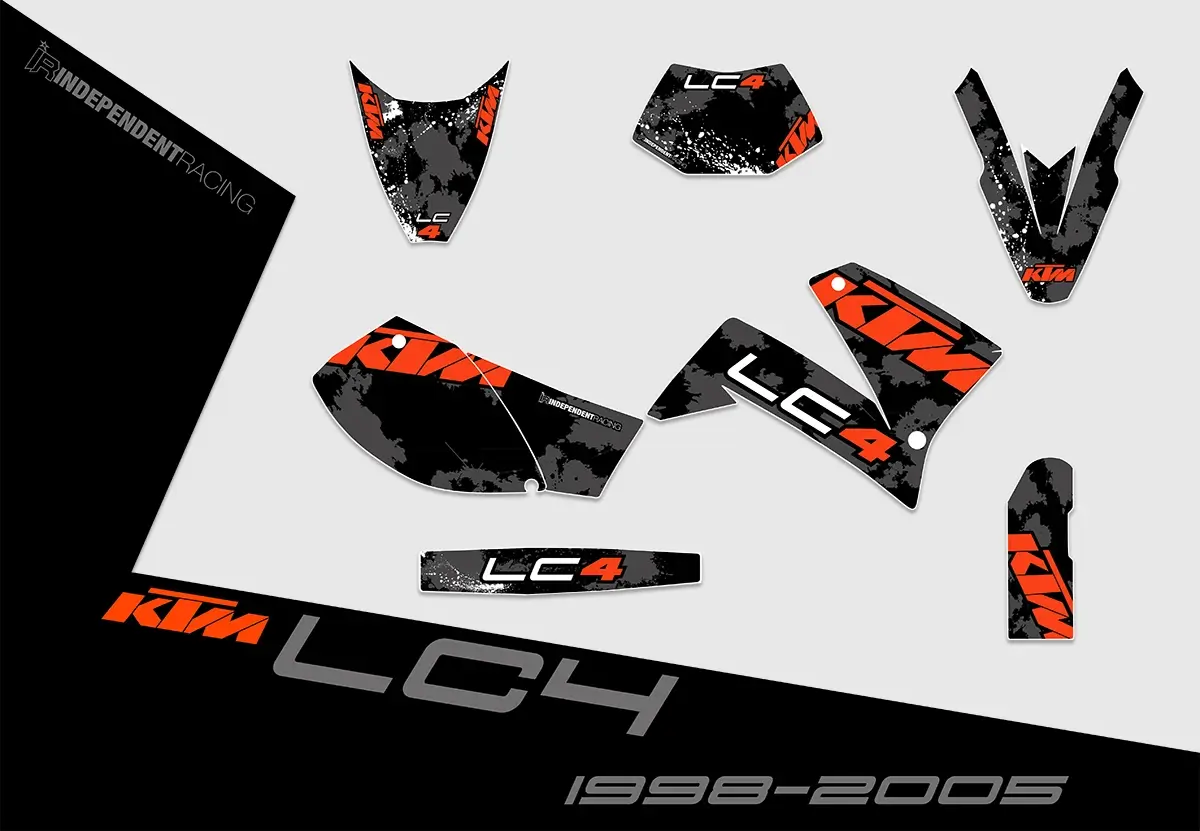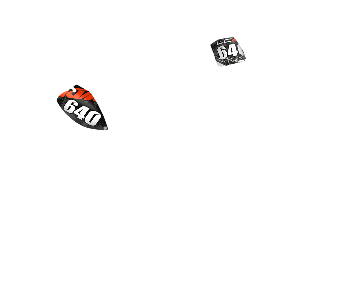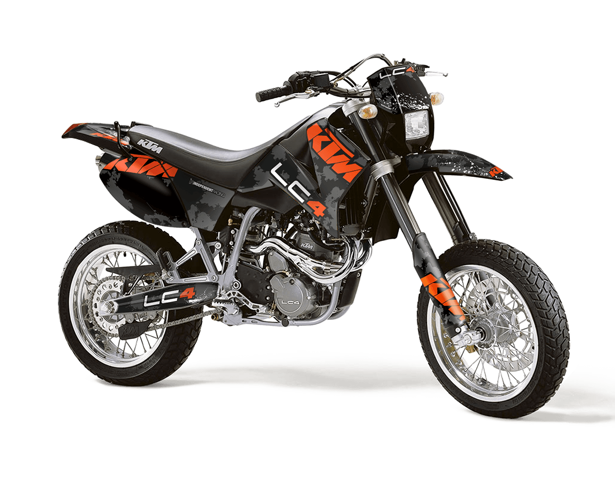 Die KTM LC4 ist in zwei verschiedenen Modellen erhältlich. Wichtig dabei ist zu wissen, dass alle Modelle komplett baugleich sind, lediglich die Farben der Plastikteile unterscheiden sich. Das Dekor passt also auf jeden Fall auf dein Bike. Dies dient nur der besseren Ansicht. So kannst du dir einfacher vorstellen, wie das Dekor auf deinem Bike aussieht. Am Dekor ändert die Auswahl des Modells nichts. Im Konfigurator kannst du zwischen diesen zwei Modellen auswählen.