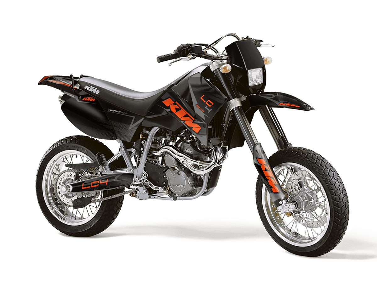 Die KTM LC4 ist in zwei verschiedenen Modellen erhältlich. Wichtig dabei ist zu wissen, dass alle Modelle komplett baugleich sind, lediglich die Farben der Plastikteile unterscheiden sich. Das Dekor passt also auf jeden Fall auf dein Bike. Dies dient nur der besseren Ansicht. So kannst du dir einfacher vorstellen, wie das Dekor auf deinem Bike aussieht. Am Dekor ändert die Auswahl des Modells nichts. Im Konfigurator kannst du zwischen diesen zwei Modellen auswählen.