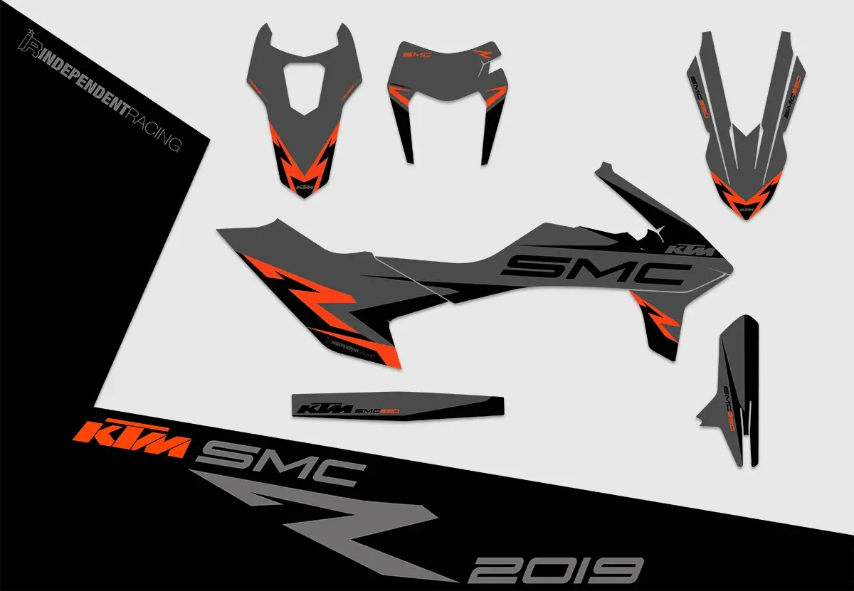 Die KTM SMCR ab 2019 ist in drei verschiedenen Modellen erhältlich. Wichtig dabei ist zu wissen, dass alle Modelle komplett baugleich sind, lediglich die Farben der Plastikteile unterscheiden sich. Das Dekor passt also auf jeden Fall auf dein Bike. Im Konfigurator kannst du zwischen diesen drei Modellen auswählen. Dies dient nur der besseren Ansicht. So kannst du dir einfacher vorstellen, wie das Dekor auf deinem Bike aussieht. Am Dekor ändert die Auswahl des Modell nichts.